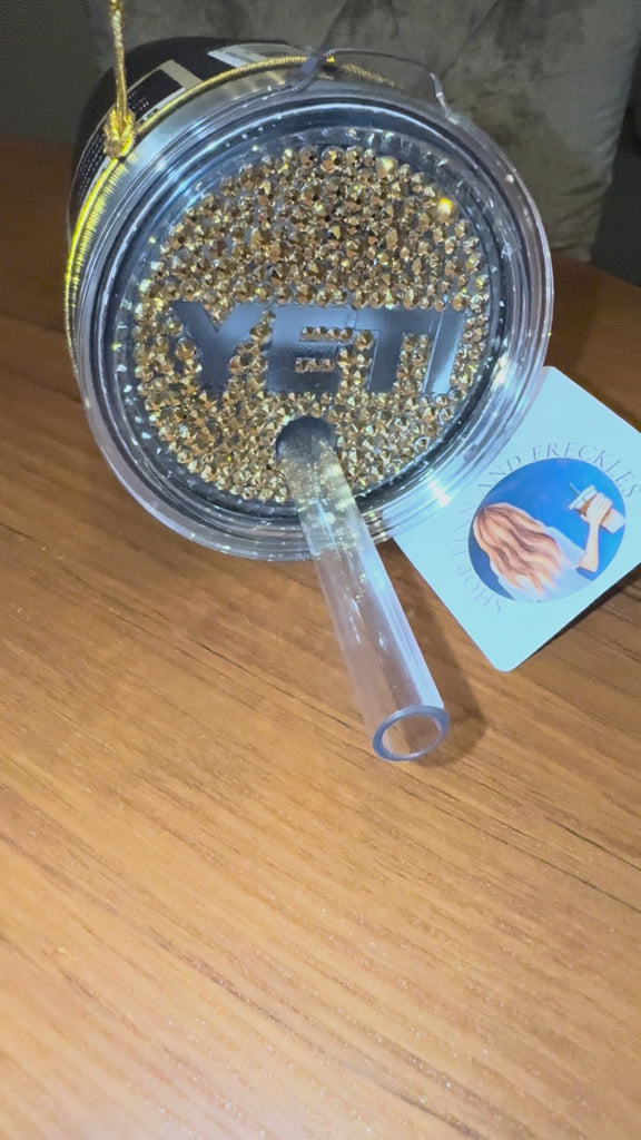 Lid is fully covered in gold crystals -minus the YETI logo-