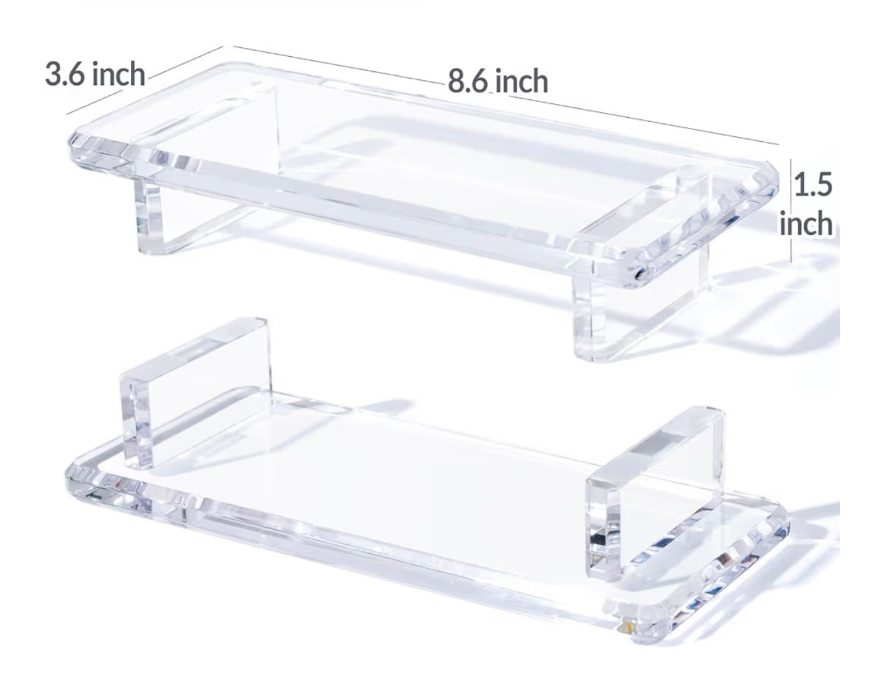 Add a touch of sparkle to your space with this rectangular decorative tray, fully encrusted with shimmering clear glass rhinestones atop a transparent base. Its raised legs provide an elevated display platform, perfect for showcasing jewelry or other treasured keepsakes with a glamorous flair. - Material: Clear acrylic and glass rhinestones